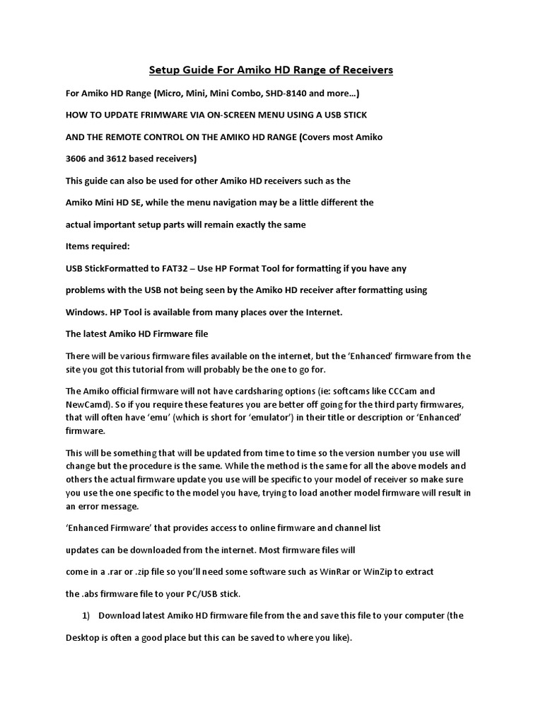 Setup Guide For Amiko Hd Range Of Receivers Usb Flash Drive Usb