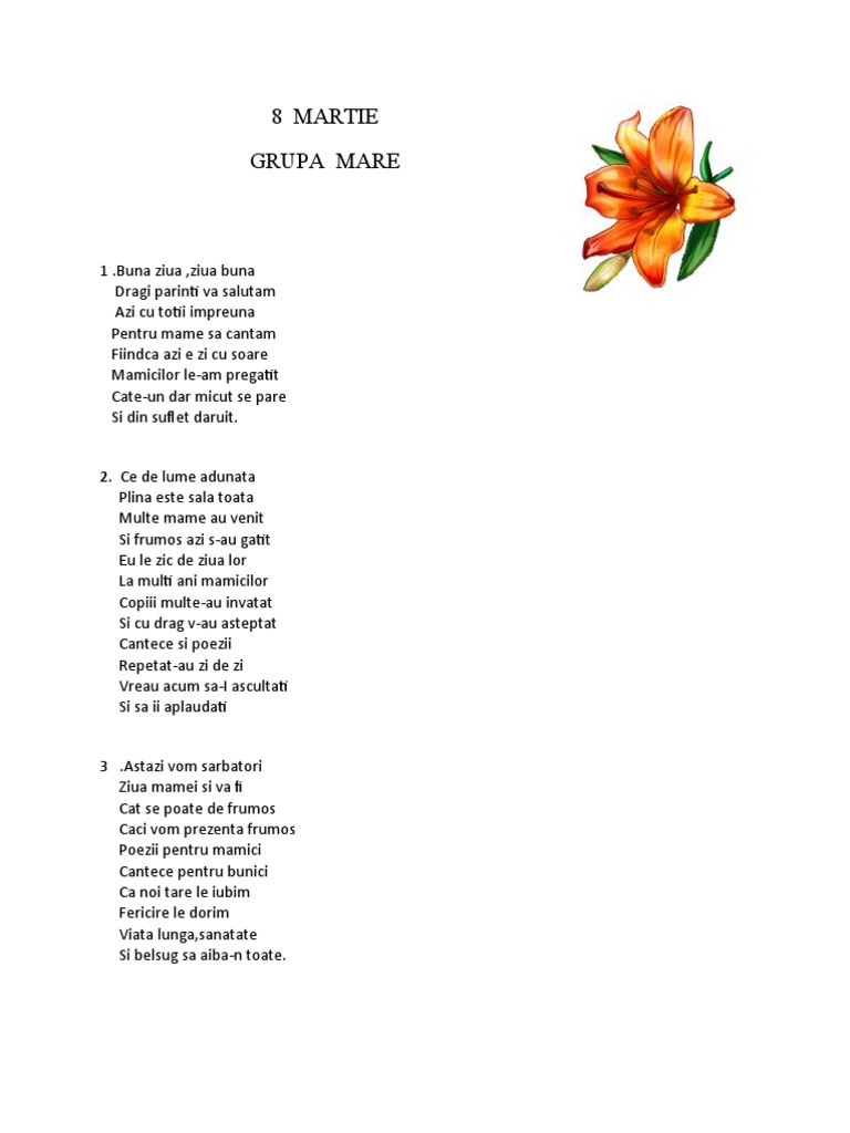 Cantece Pt Mame De 8 Martie Scrietile In Versuri Va Rog Rapid Am Nevoie Brainly Ro