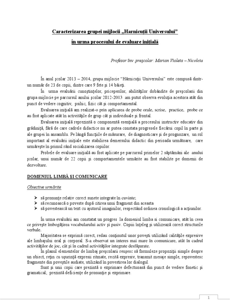 Doc Caracterizarea Grupei In Urma Evaluarilor Initiale Iancu Codreanu Andreea Academia Edu