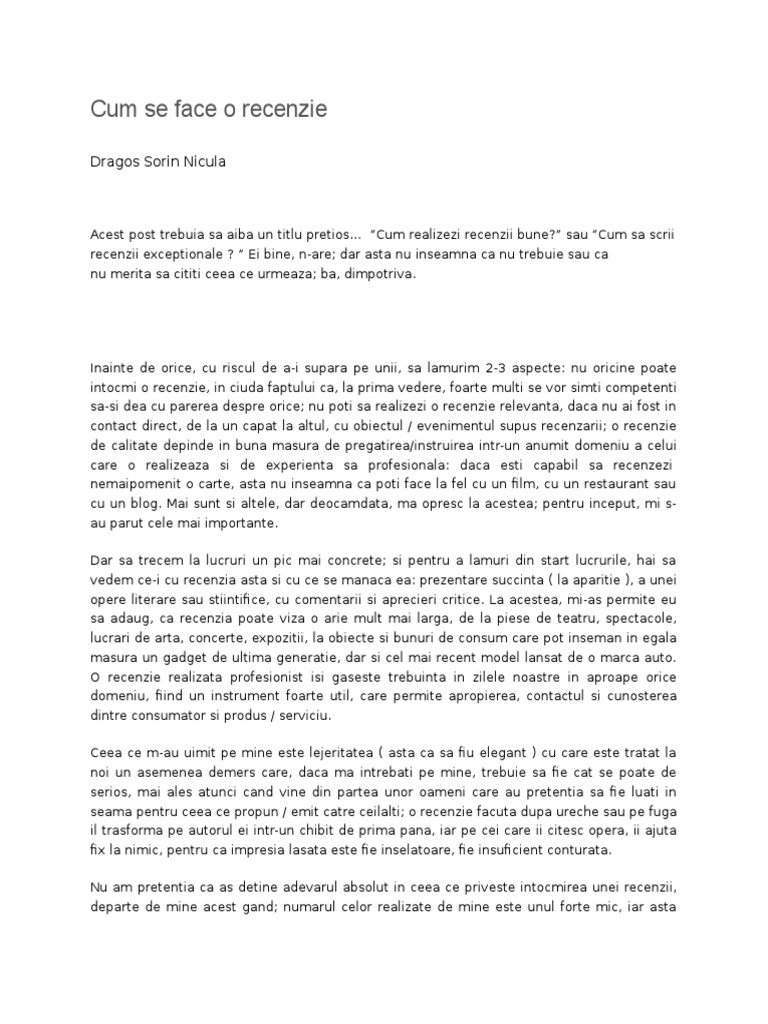 Cum Se Face O Recenzie Dragos Sorin Nicula