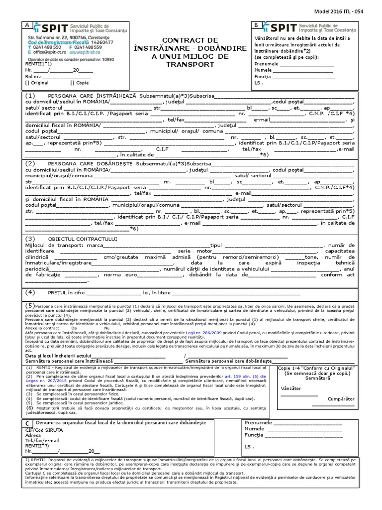 Itl 054 Contract De Instrainare Dobandire A Unui Mijloc De Transport