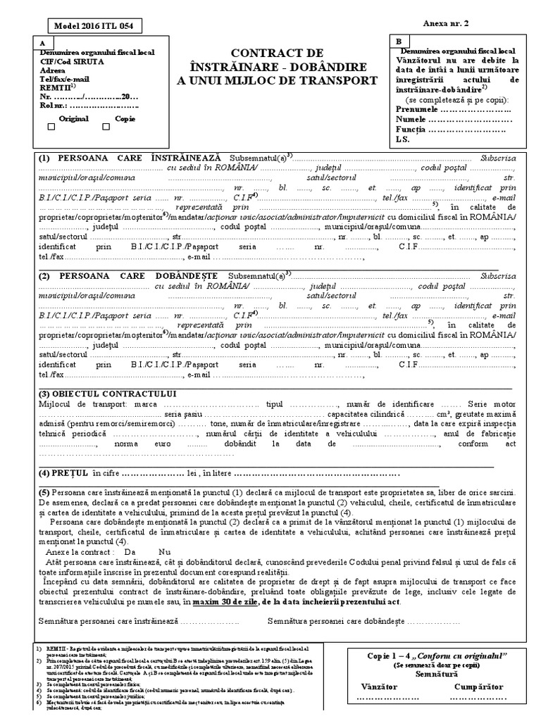 Model Completat Contract De Instrainare Dobandire A Unui Mijloc De Transport