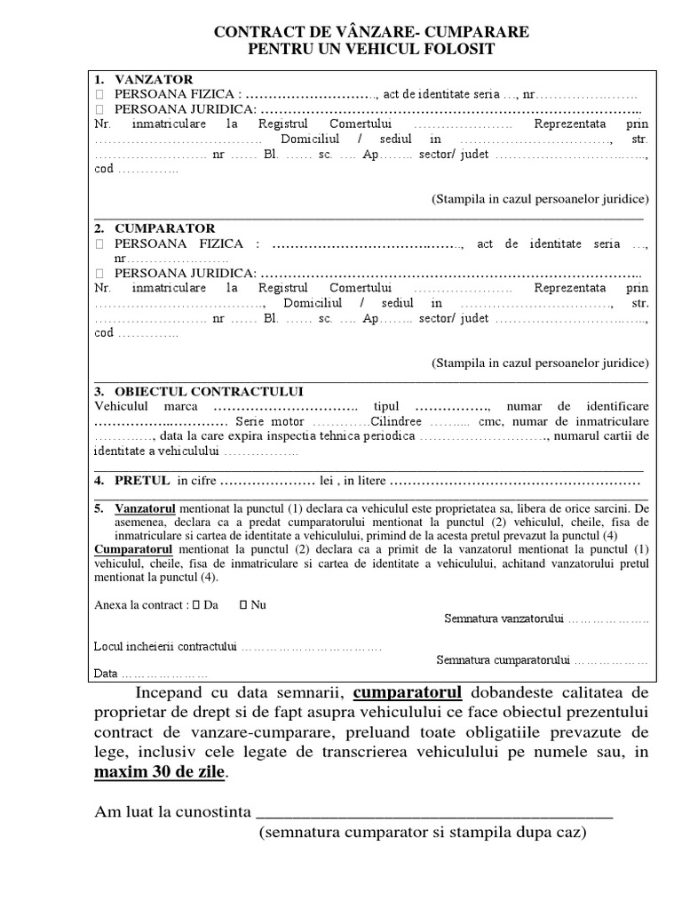 Contract Vanzare Cumparare Auto Cehia Pdf