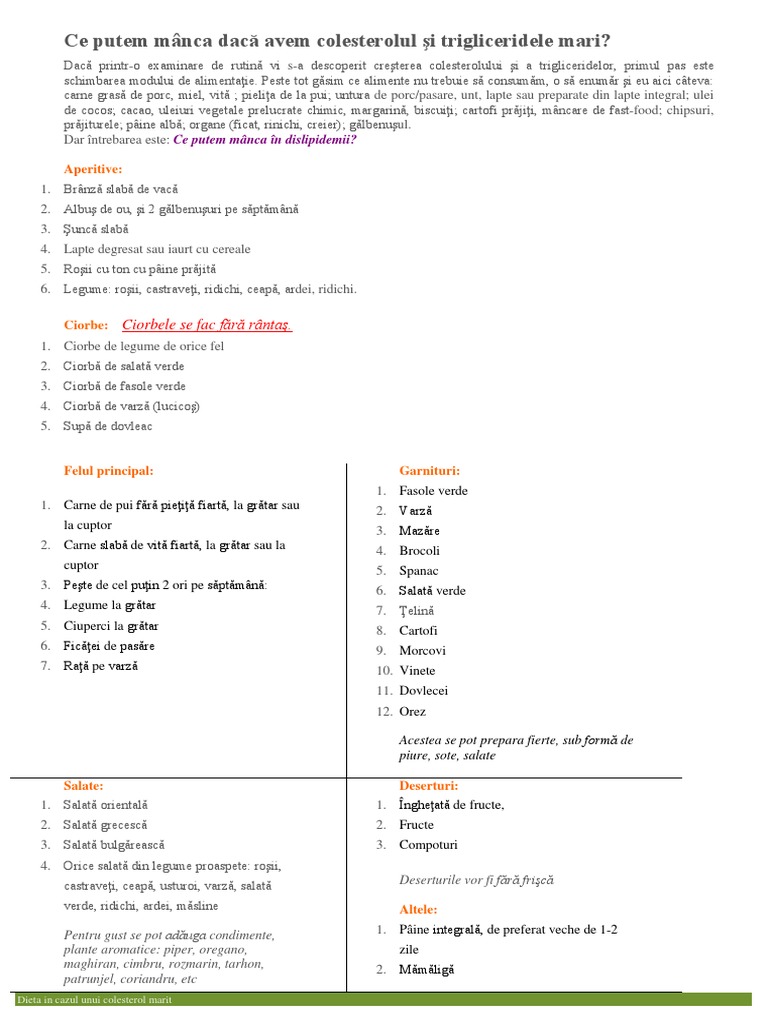 Ce Putem Manca Dacă Avem Colesterolul Si Trigliceridele Mari