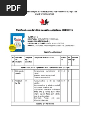 Planificari Calendaristice Manuale Castigătoare Mecs 2015 Litera