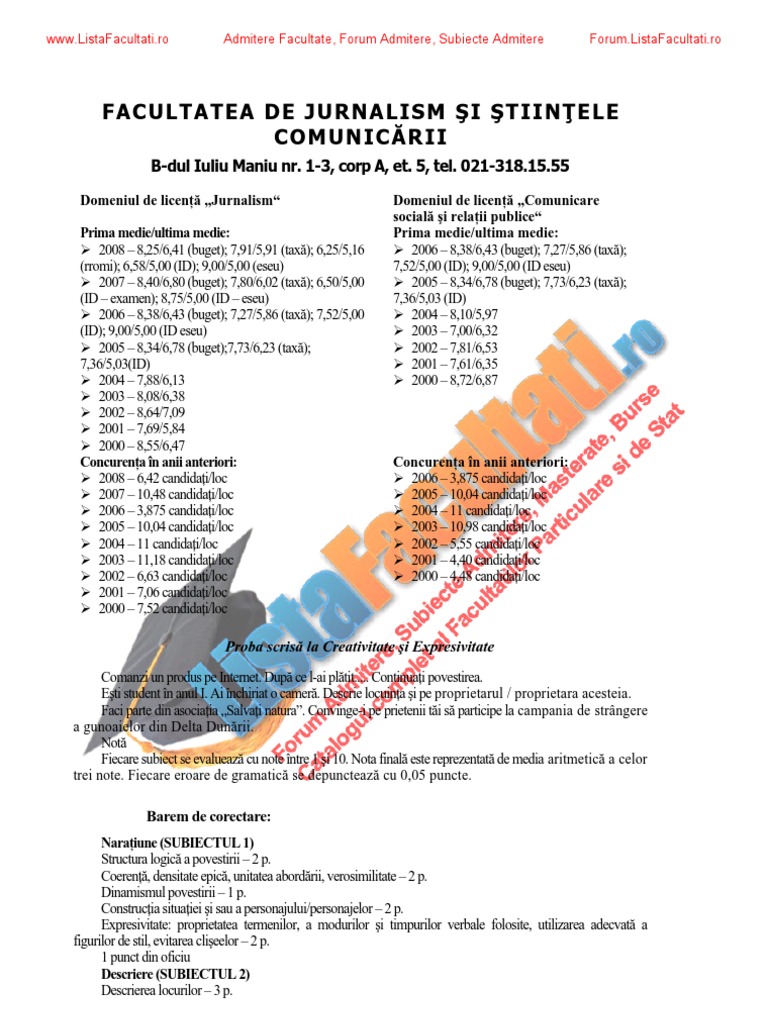 Facultatea De Jurnalism Bucuresti Subiecte Admitere