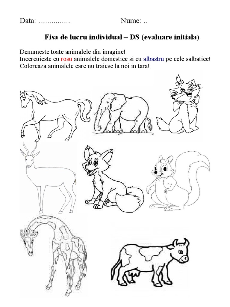 Fise De Lucru Gradinita Fise De Lucru Cu Animale Salbatice Si Domestice