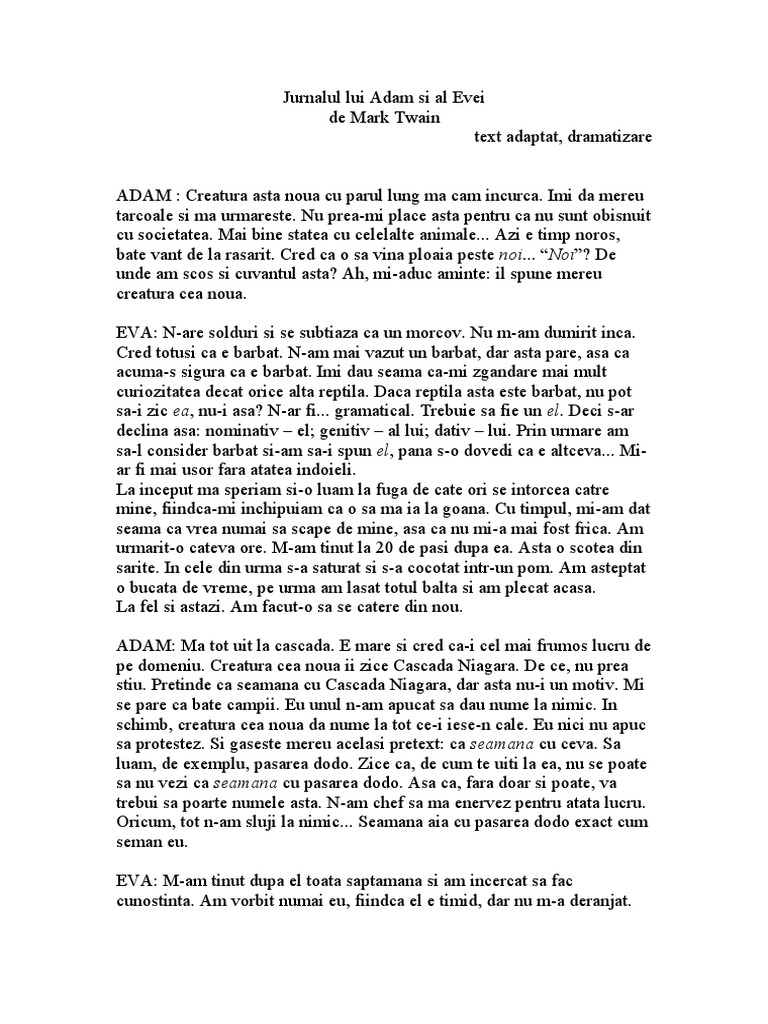 Jurnalul Lui Adam Si Al Evei De Mark Twain Completa