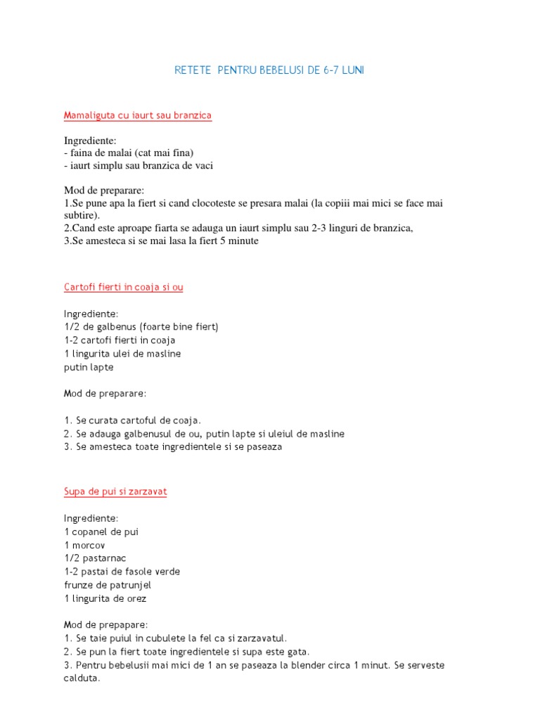 Retete Pentru Bebelusi De 6 7 Luni
