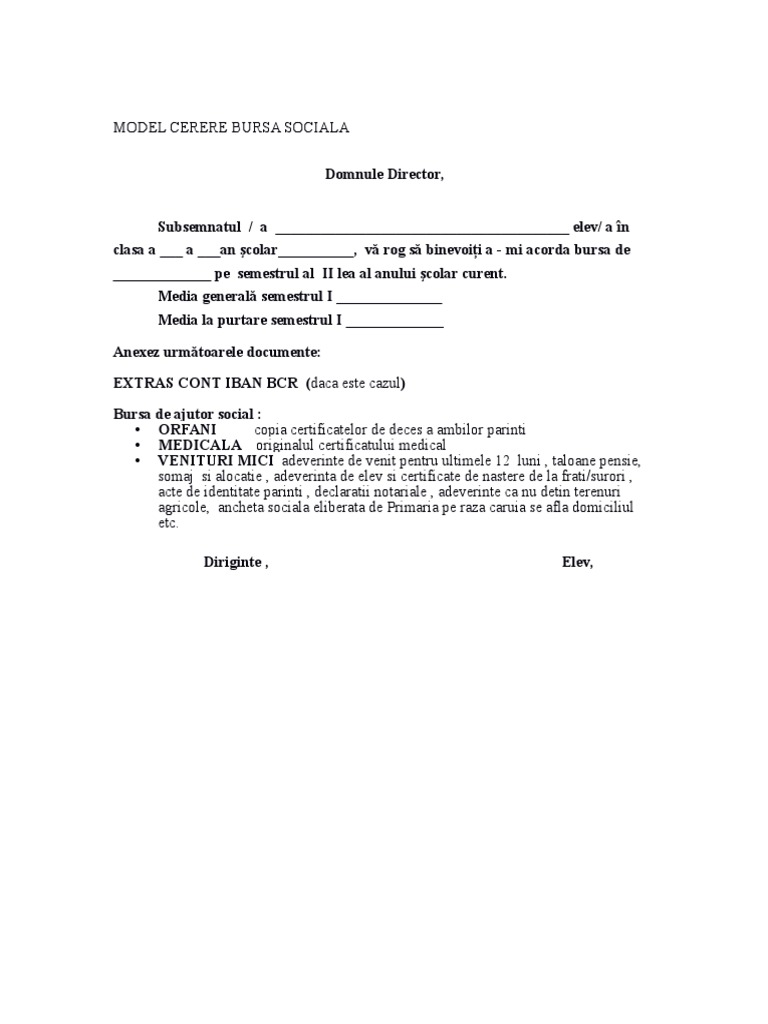 Model Cerere Bursa Sociala