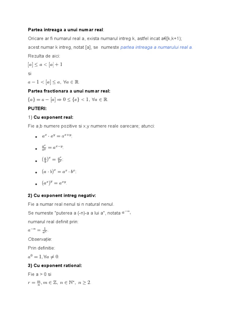 Ix Algebra Sinteze Partea Intreaga Si Partea Fractionara A Unui Numar Real Reactualizare Youtube