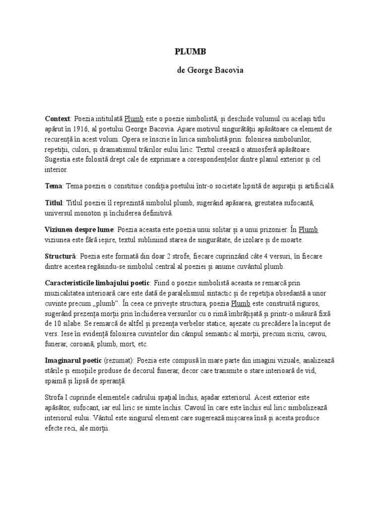 Referat Plumb De George Bacovia 327986 Graduo
