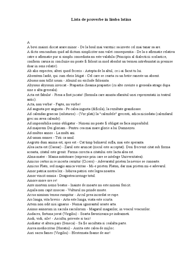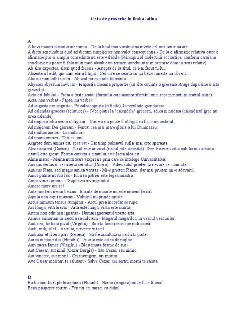 Lista De Proverbe In Limba Latina
