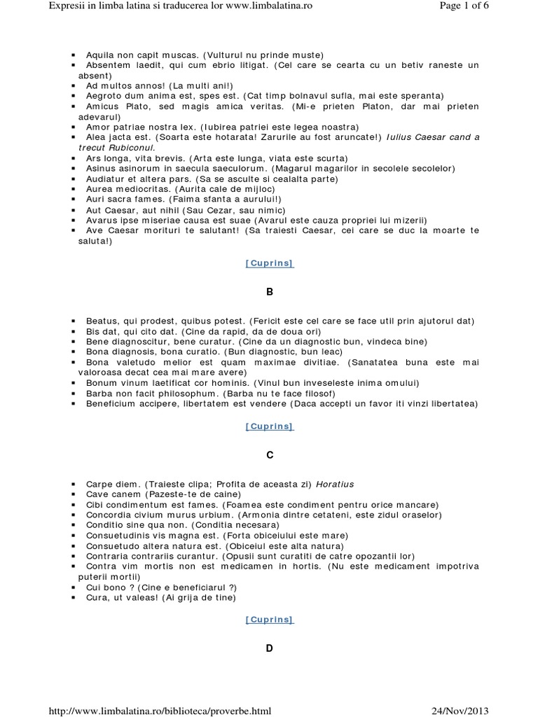 Proverbe Si Cugetari Latine Cugetarile Sunt In Limba Latina Si Romana Arhiva Okazii Ro