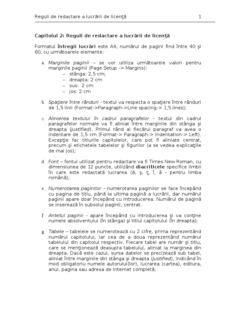 Reguli De Redactare Licenta