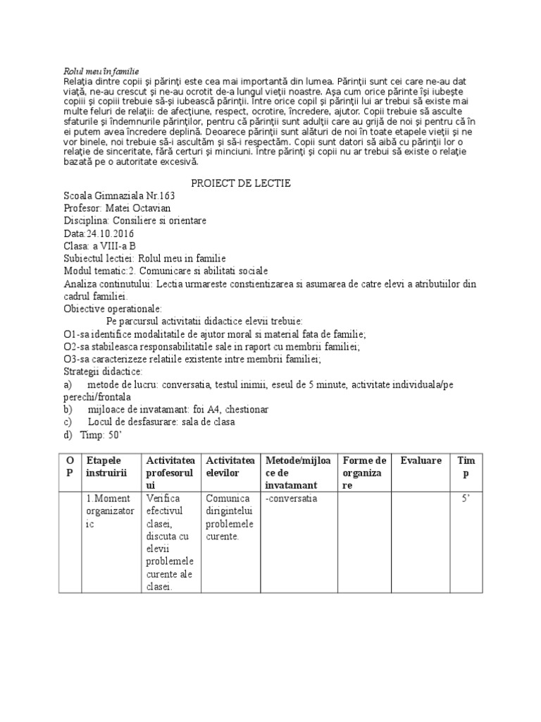 Rolul Meu In Familie Doc Document