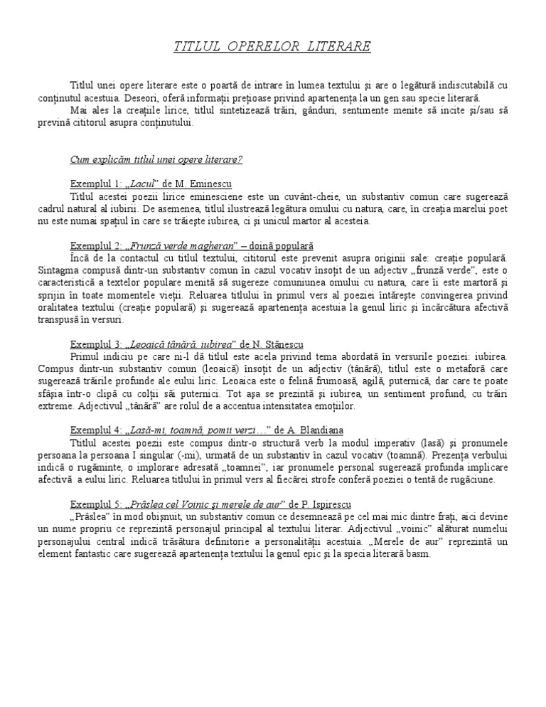 Semnificatia Titlului Definitie Si Trasaturi
