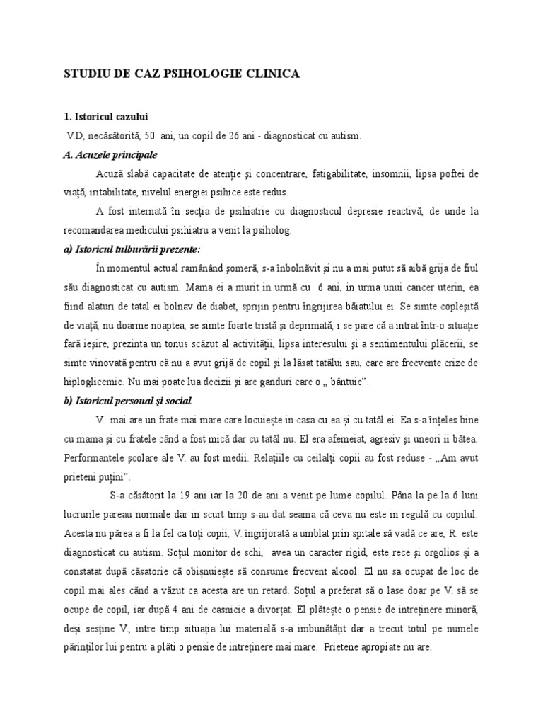 Referat Studiu De Caz Practica Psihologie Clinica Psihologie 380258