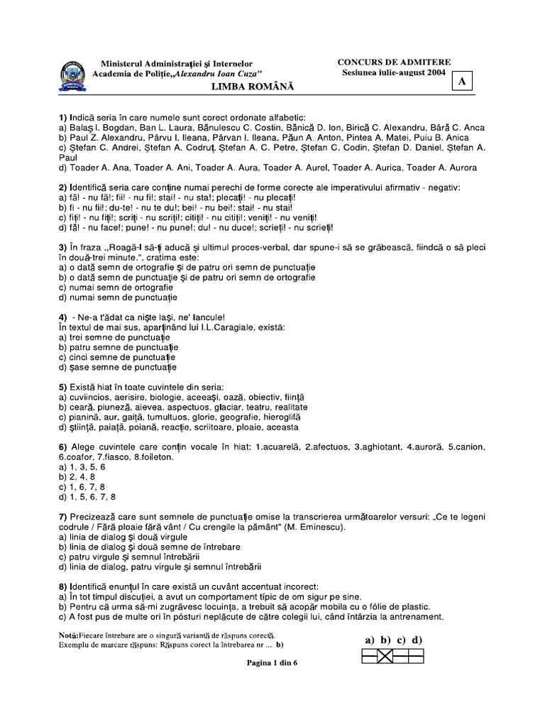 Subiecte Admitere Academia De Poliție 2017 Răspunsuri Grilă Dcnews