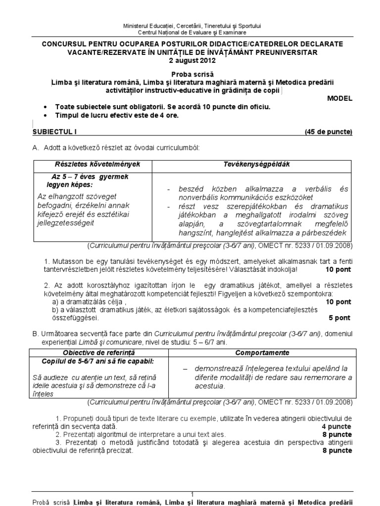 Subiecte Variante Si Rezolvari Pentru Examene Nationale 2020 Subiect Model Educatori Maghiara Titularizare 2012