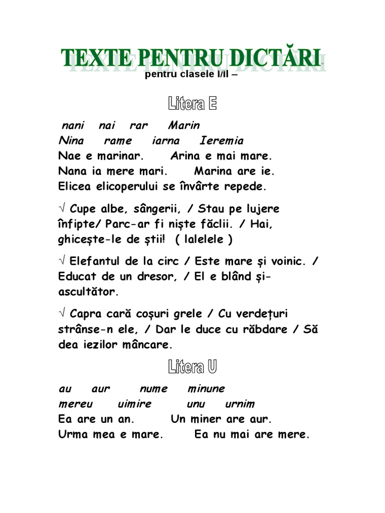 Cl 1 Texte Pentru Dictari
