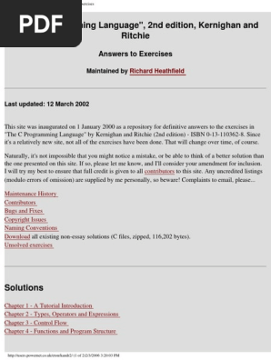 The C Answer Book Solutions To The Exercises In The C Programming Language Second Edition Pdf Free Download