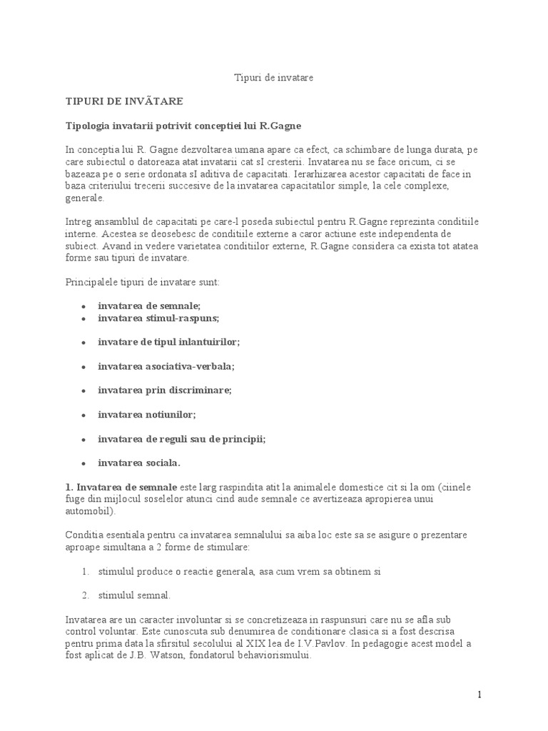 Tipurile De Invatare Si Aplicarea Lor In Viata De Zi Cu Zi