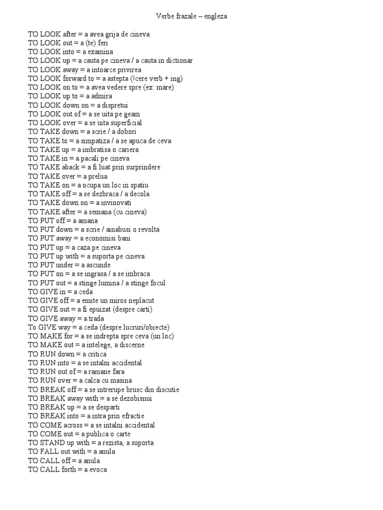 Lista Verbe Neregulate Si Frazale Reljyp6677l1