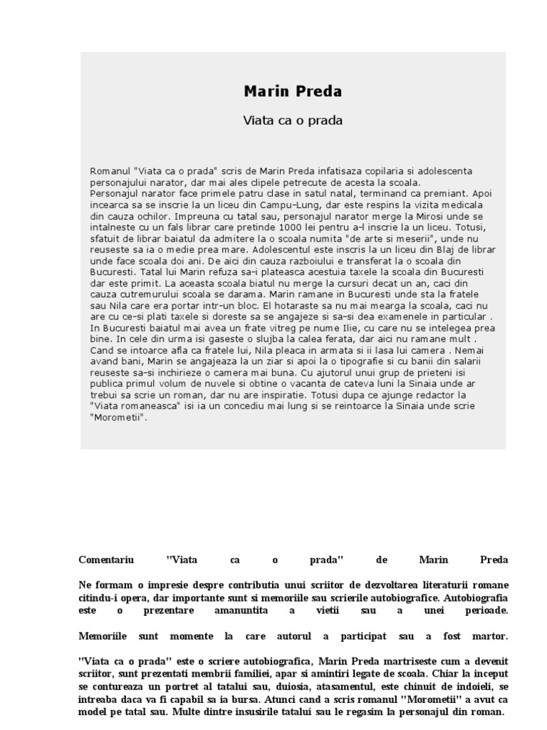 Referat Marin Preda Viata Ca O Prada 329242 Graduo
